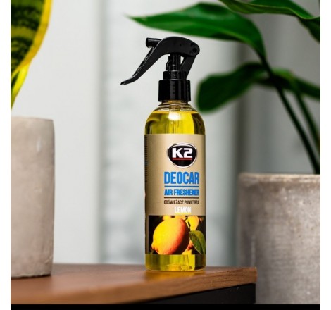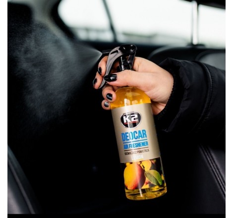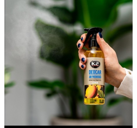 Odświeżacz powietrza z atomizerem K2 Deocar jest wyjątkowo wydajny. Dzięki zastosowaniu nowoczesnego aplikatora odświeżacz zrasza otoczenie delikatną mgiełką, która skutecznie wypełnia cudownym aromatem całą przestrzeń. Butelka 250ml wystarcza na ponad 700 aplikacji. Szczegółowo wyselekcjonowane, intensywne kompozycje zapewniają długotrwałe utrzymanie się zapachu w pomieszczeniu.