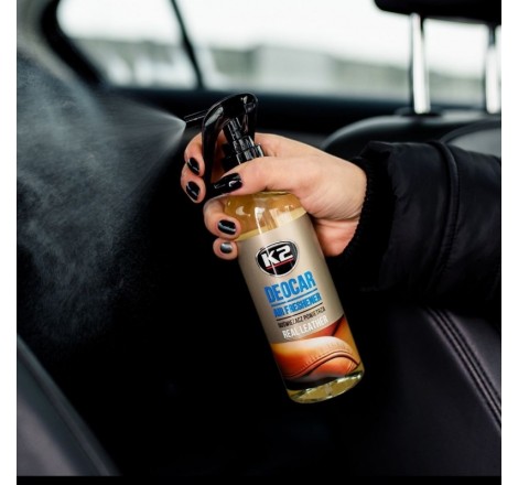 Odświeżacz powietrza z atomizerem K2 Deocar jest wyjątkowo wydajny. Dzięki zastosowaniu nowoczesnego aplikatora odświeżacz zrasza otoczenie delikatną mgiełką, która skutecznie wypełnia cudownym aromatem całą przestrzeń. Butelka 250ml wystarcza na ponad 700 aplikacji. Szczegółowo wyselekcjonowane, intensywne kompozycje zapewniają długotrwałe utrzymanie się zapachu w pomieszczeniu.